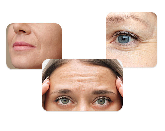 concentrées autour des yeux, du front et de la bouche, sont le résultat de divers facteurs tels que l'exposition au soleil, le stress, le tabagisme et le processus naturel de vieillissement.