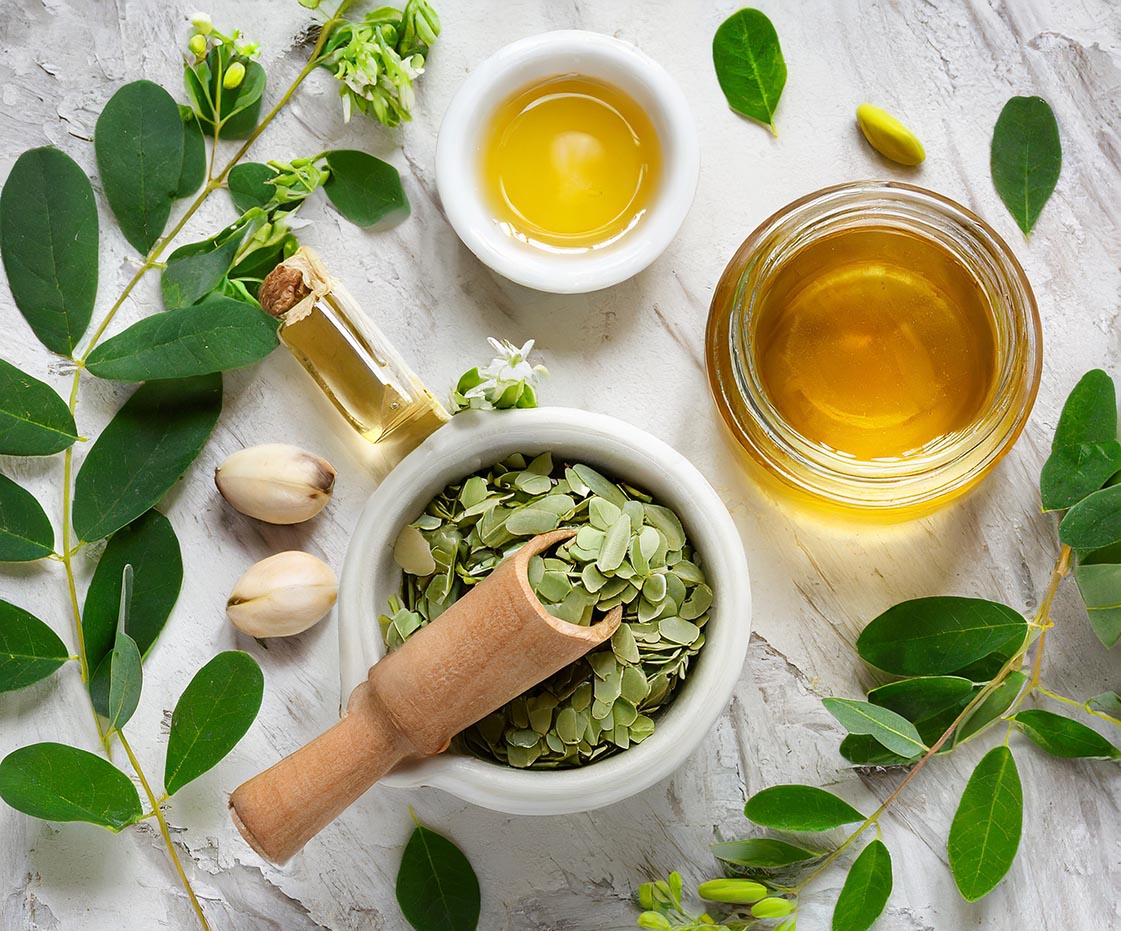 - Apaisement de la peau : Le moringa calme les irritations cutanées, les rougeurs et les démangeaisons.